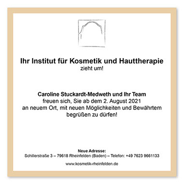 ist ein Institut für Kosmetik und Hauttherapie in Rheinfelden– alter Name No. 31. Das Unternehmen, ein über die Jahre etabliertes Geschäft, wurde verkauft und zog an einen neuen Ort: die „Villa“.