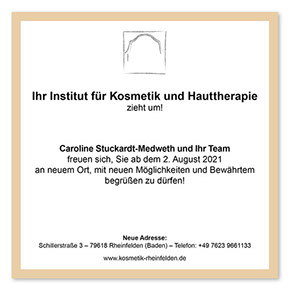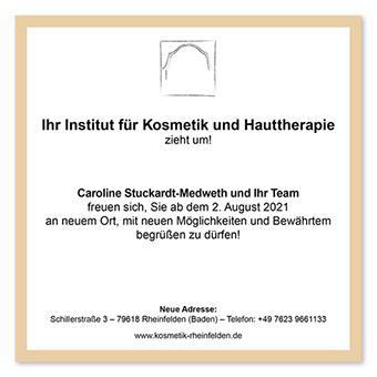 ist ein Institut für Kosmetik und Hauttherapie in Rheinfelden– alter Name No. 31. Das Unternehmen, ein über die Jahre etabliertes Geschäft, wurde verkauft und zog an einen neuen Ort: die „Villa“.